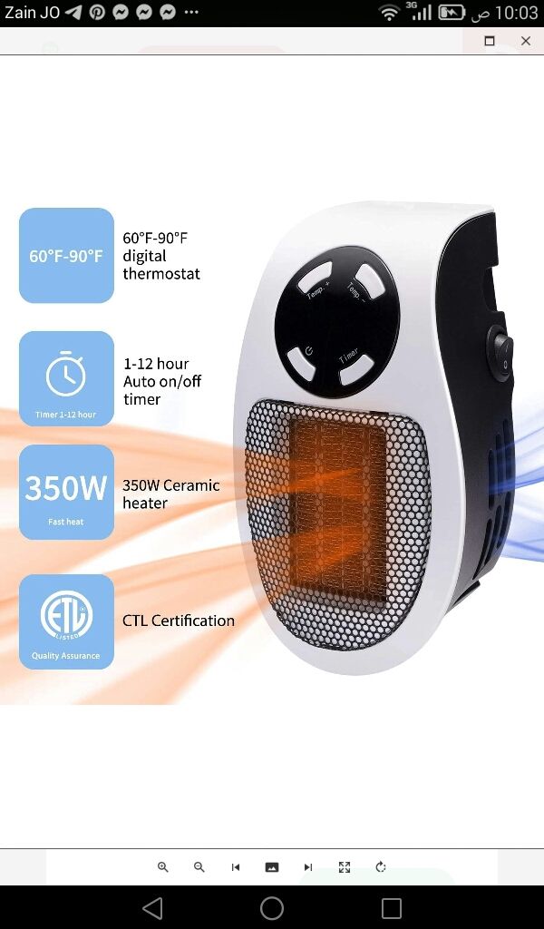 * الحماية من الحرارة الزائدة ستغلق السخان تلقائيًا عند ارتفاع درجة الحرارة