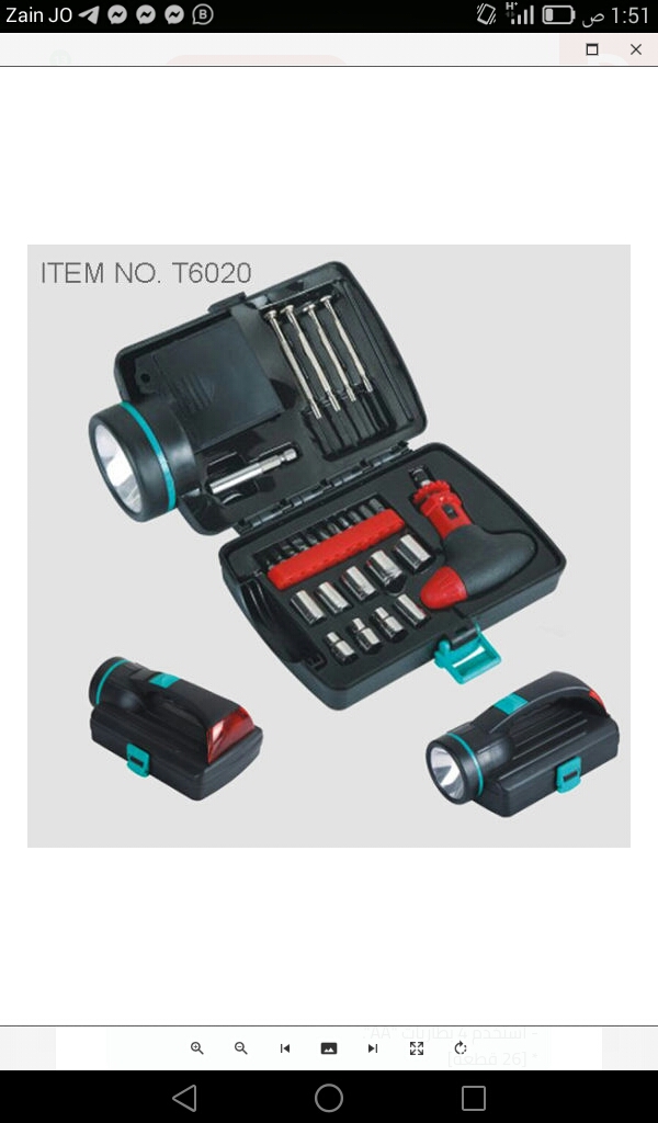 - مصباح يدوي ومجموعة أدوات في صندوق واحد.