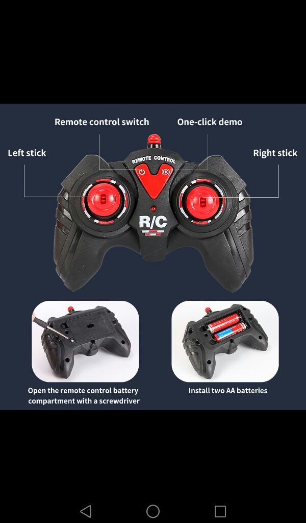 - الوظيفة: للأمام ، للخلف ، الانعطاف لليسار ، الانعطاف لليمين ، الإضاءة ، التدحرج 360 درجة ، التدحرج للخلف.