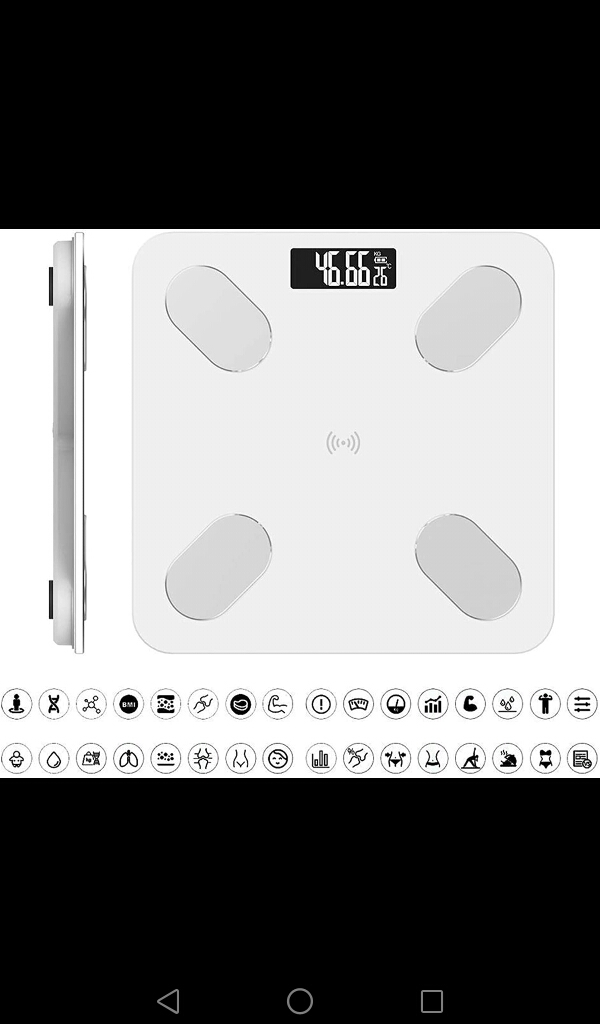 - وظيفة المنتج: الوزن ؛ معدل الكشف عن الدهون اتصال Bluetooth مع تطبيق الهاتف المحمول ؛ البث الصوتي نصائح لفقدان الوزن. عرض درجة الحرارة الداخلية.